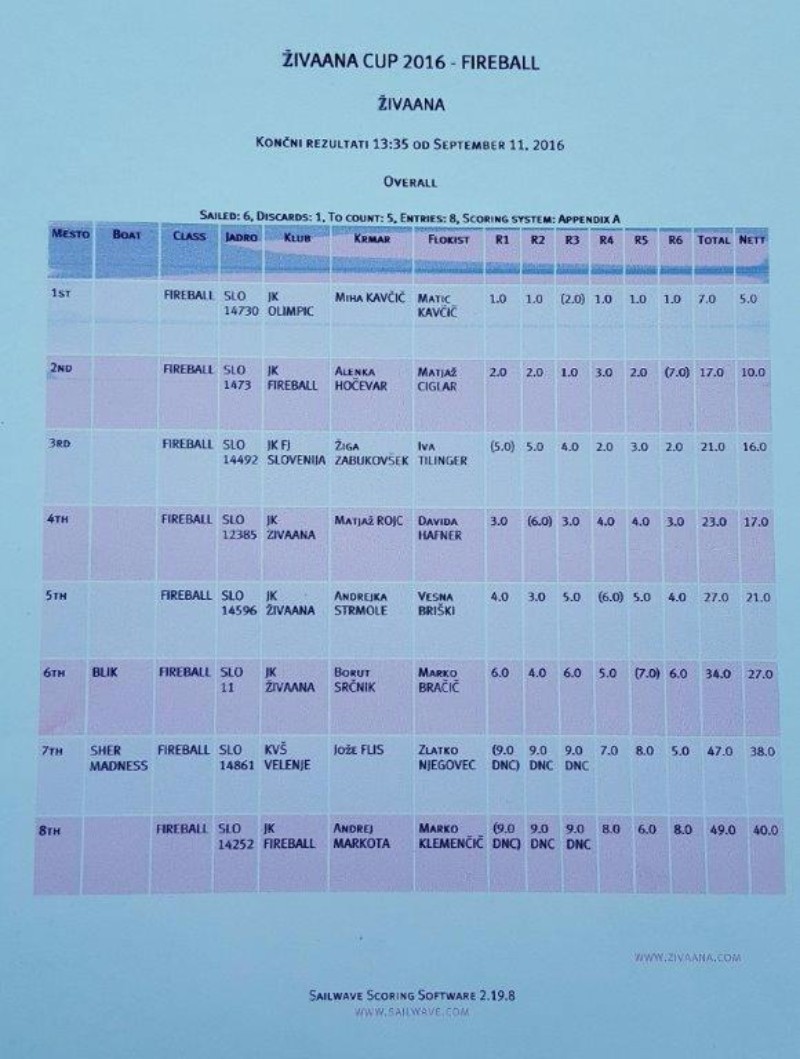 Rezultati tekoče sezone